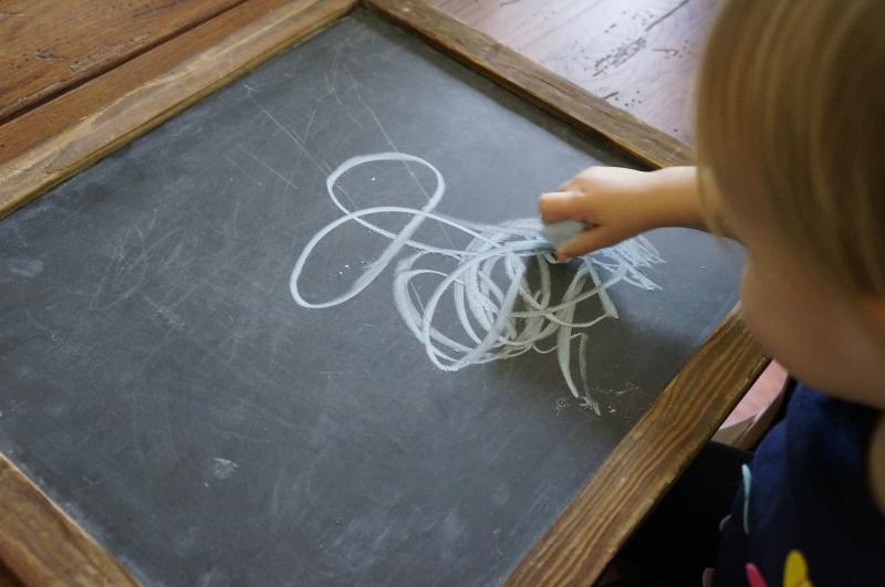 A black board is just wonderful for drawing... lines are bold, there is just enough resistance so that it is easy for your beginner to control her drawing.