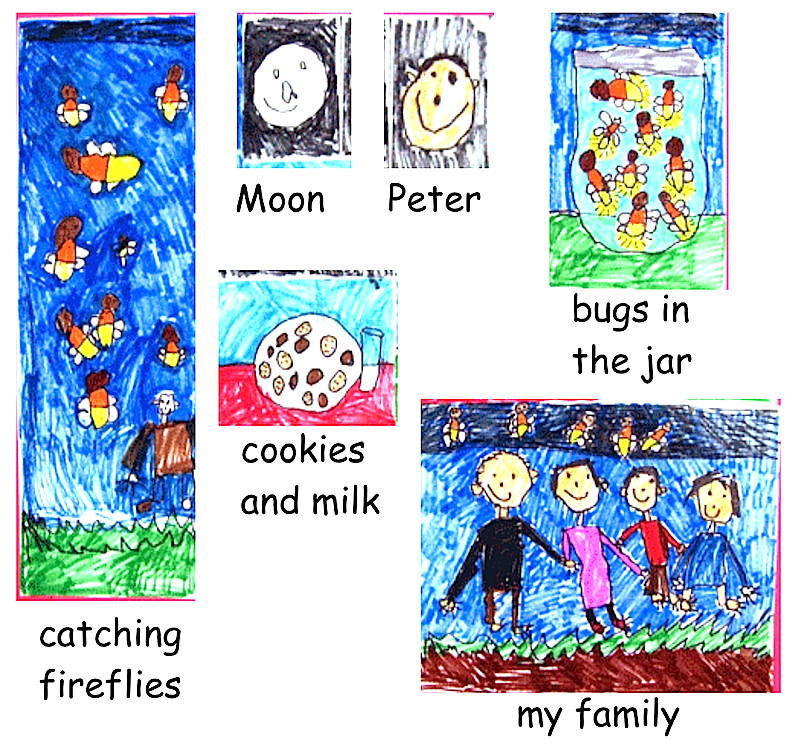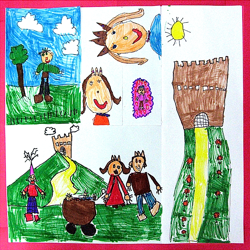 They are the culmination of our practice with symbolic drawing. When children know that their images will be “read” they do wonderfully expressive and clear drawings. They also ask for help, just as they will when they write a short story. Clarity and nuance became important.
