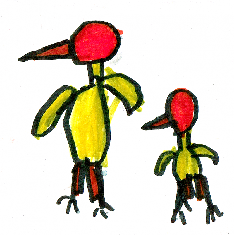 Once she can draw a circle, the addition of a few more lines will make many different drawings.