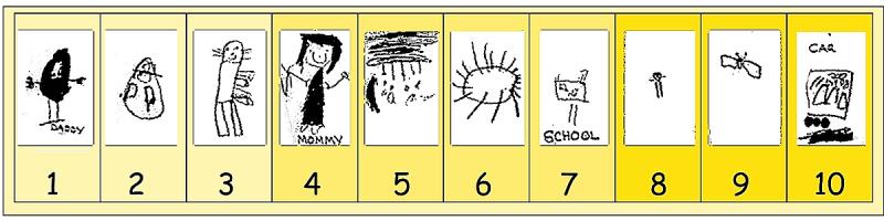 Story board cards are 5x7 index cards with a piece of magnet tape on the back. The tape is added when the teacher and the student are satisfied with the way the card looks. The board can be made on a wall by painting the wall with metal paint, then if you wish you can paint a color over. The first cards which represent everyday things such as a house, dog, cat, sun, rain, boy, girl etc. They are drawn in black marker with no help from the teacher.