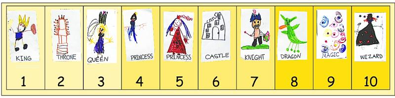 second phase: drawings by children (see DRAW!) words written by teacher/uppercase letters - one card/one word