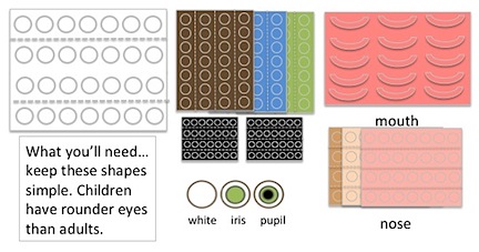 What could please an early beginner more than an activity centered on them? The excitement will build as they construct and put together a concrete picture of themselves. A hard copy of their own growing awareness. It seems like a lot of work, but it's mostly planning, patience and above all paper clips! And so worth it....