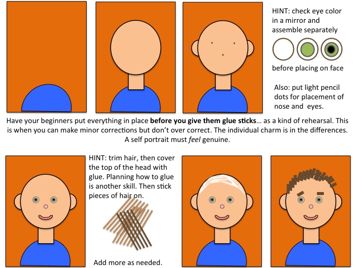 I think that this self portrait project is a grounding activity that will help children secure their hold on reality. This will allow them to join in the coming celebration of fantasy, shape shifting and revelry, that almost everyone (especially me) thinks is fun.